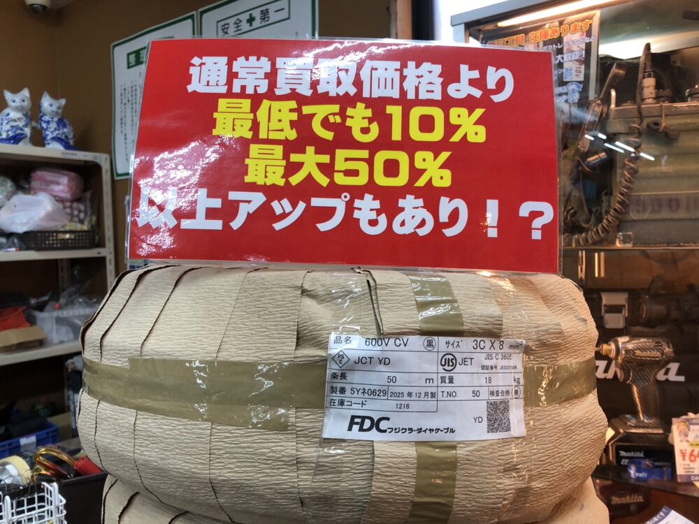 【浜松入野店】FDC フジクラ CV 3Cx8m㎡ 住宅設備品 未使用品 をお買取させて頂きました!…