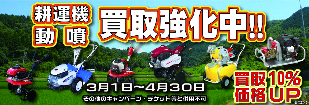 3、4月は耕運機・動噴の買取強化月間です!!