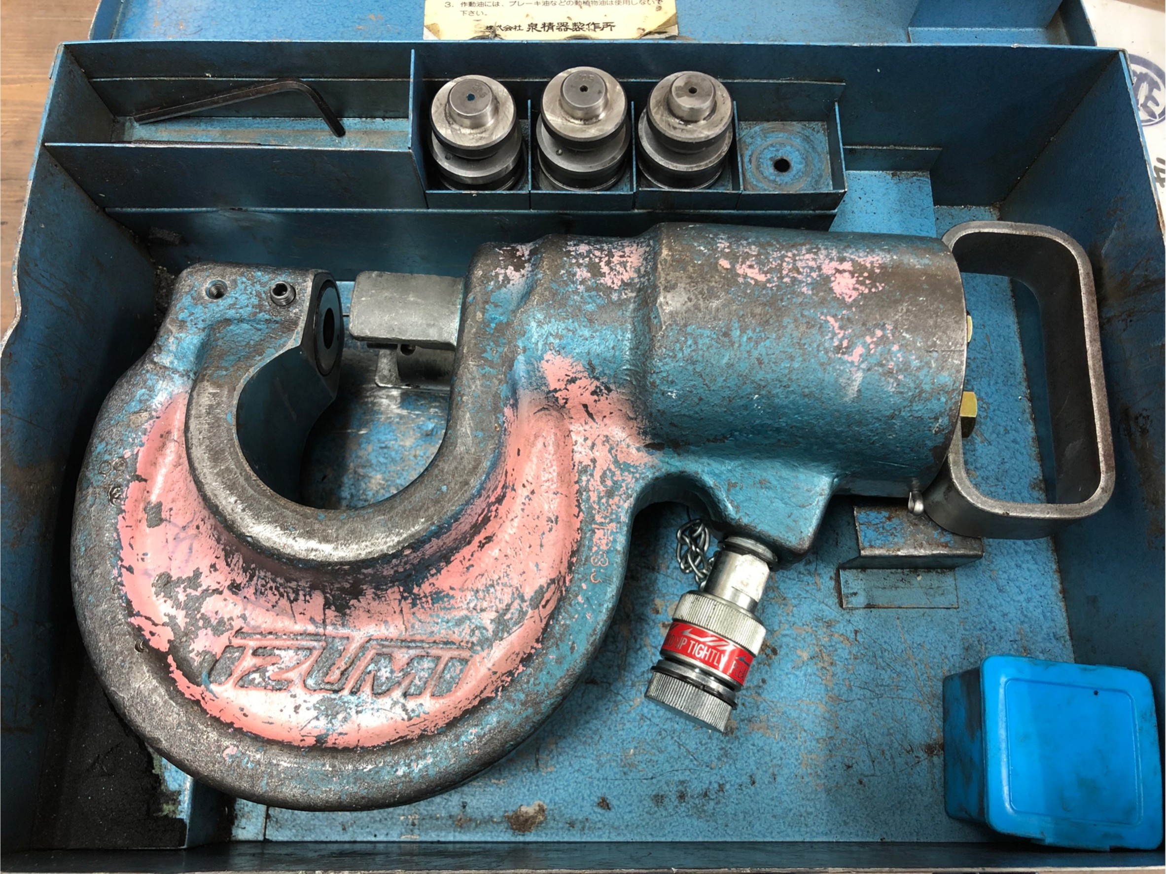 こちらの油圧パンチャー、付属品のパンチとダイスの状態も揃っており、