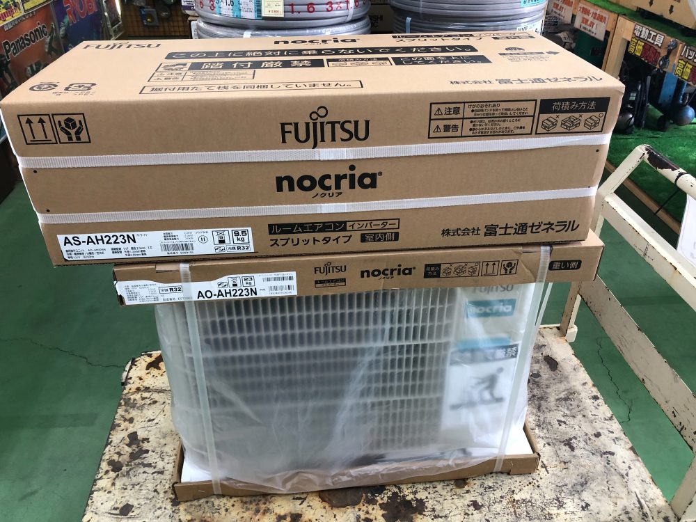 【磐田インター店】fujitsu 富士通 エアコン ノクリア nocria AO-AH224R/AS-AH224R 住宅設備品 未使用品を現金買取させていただきました!…
