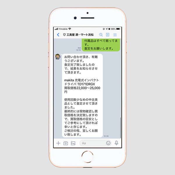 LINE・メールは24時間受付ですので、朝やお昼のスキマ時間、電車通勤中の空き時間、深夜時間帯などお客様のご都合のよろしい時間でお問合せ・お見積り・お買取が可能です。 営業時間内にお店へ来られないお客様やお店に持ち込めないお客様でも、LINE・メールでの対応が可能ならご都合の良い時間にご対応を頂ければお買取りさせて頂きます。